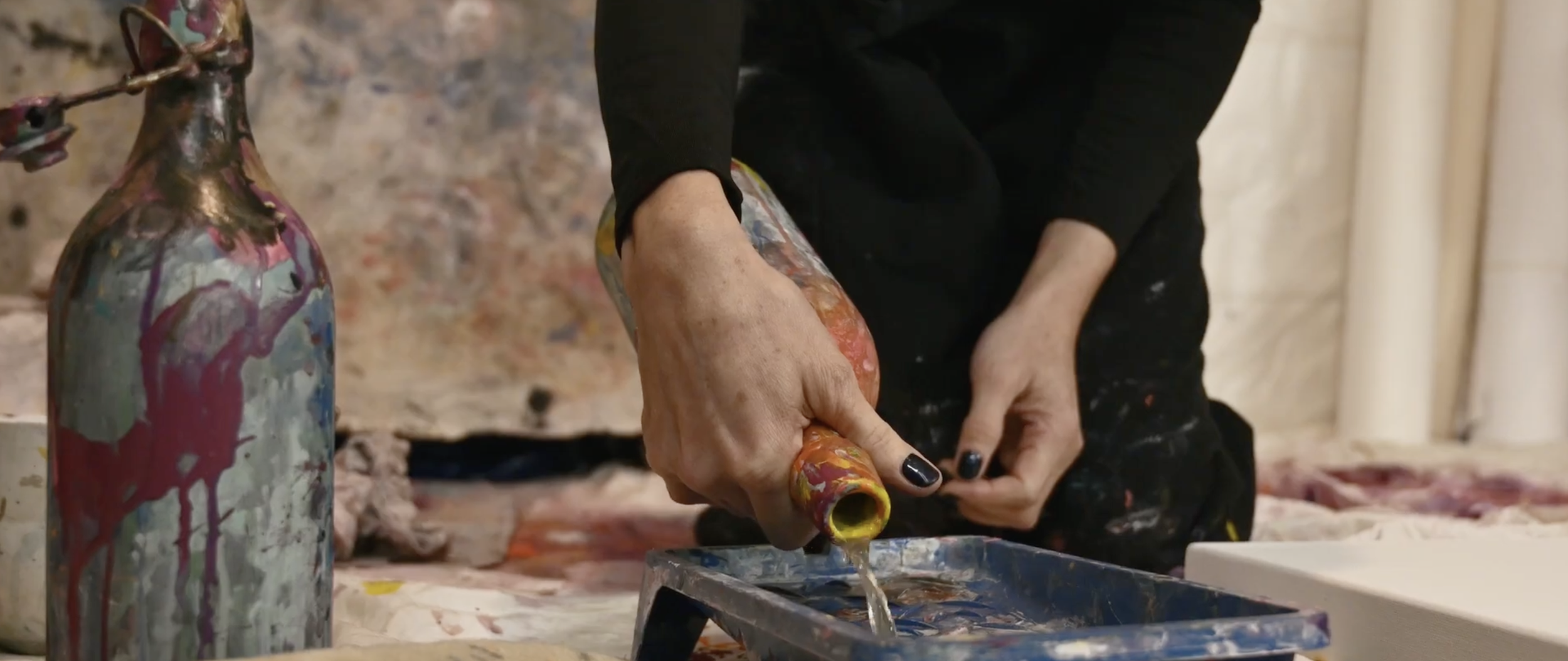 Creative WorkshopApproche intuitive à la manière de Jackson PollockProjection, coulures, mouvementRetour au calme, intégration, Respiration (type “souffle du feu”)